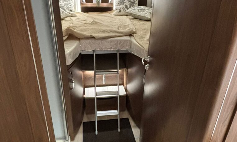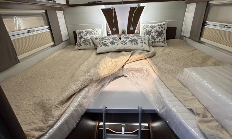 - Twin bedroom at the back of the motorhome (connects to a wide bed)