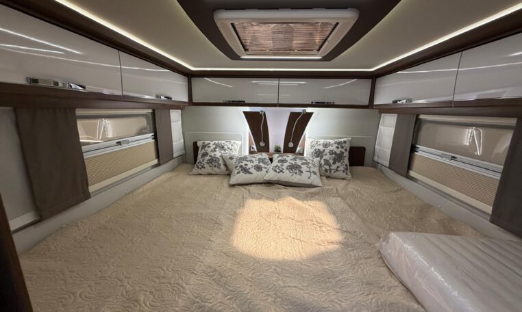 - Twin bedroom at the back of the motorhome (connects to a wide bed)