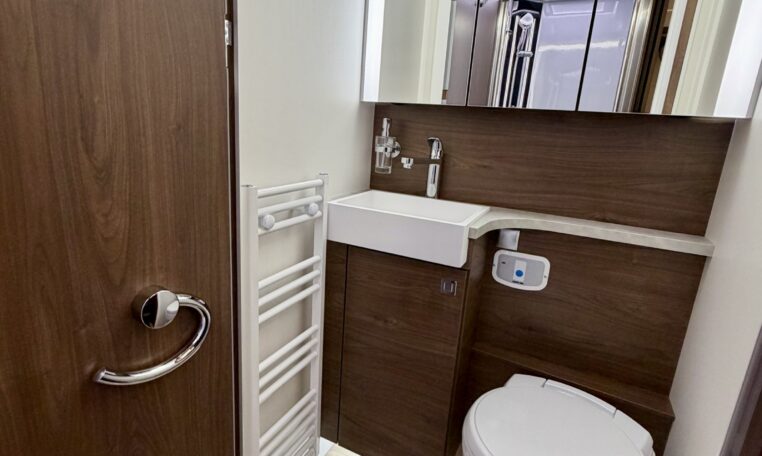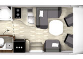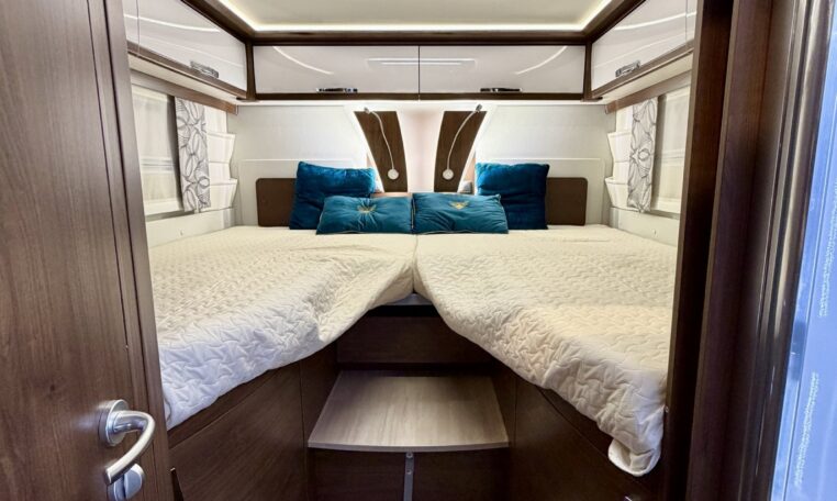 - Twin bedroom at the back of the motorhome (connects to a wide bed)
