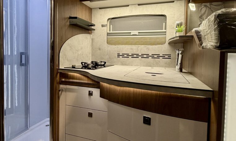 Elamu varustus: 12v veepump; 200 veepaak; elektrisoojendus; ERALDI duširuum; gaasiahi; gaasipliit (2 põletiga); LED valgustus (12v + 220v); LED välisvalgustus; THULE OMNISTOR 8000, 5,5 meetrit varikatus; ALDE vedelikkeskküte