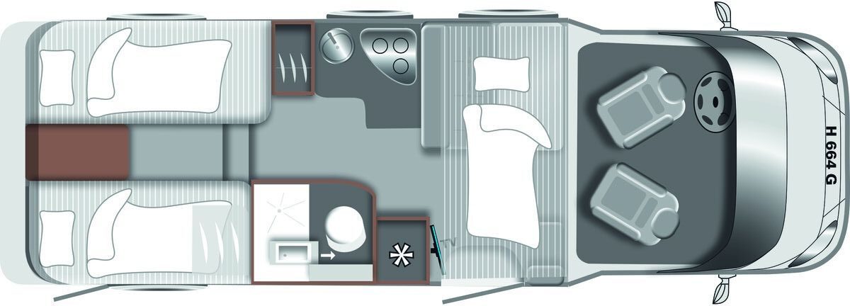 - Kaks eraldi voodit (WC ja Dušširuum sõiduki tagaosas)