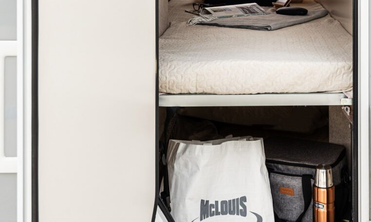 - Manual pull-down bed above the cabin part (for 2)