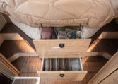 - Manual pull-down bed above the cabin part (for 2)