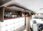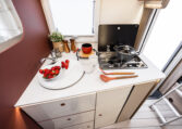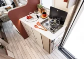Kitchenette – 142 L refrigerator with freezer (gas + 12V + 220V), sink, gas stove
