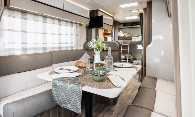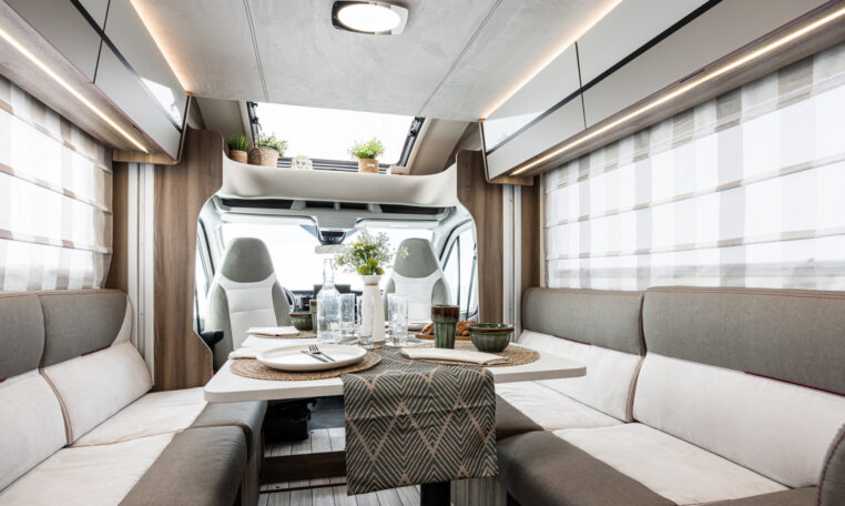 Nahkkattega istmed kabiinis ning elamuosas / Leather-upholstered seats in both cabin and living area