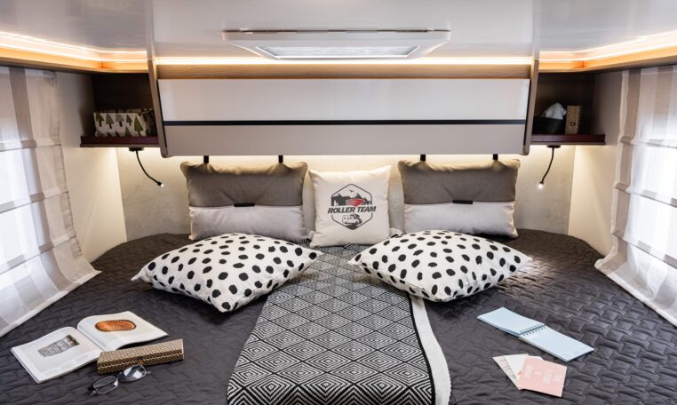 - Twin bedroom at the back of the motorhome (connects to a wide bed)