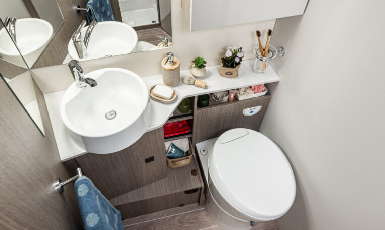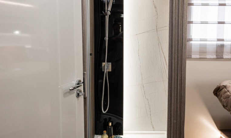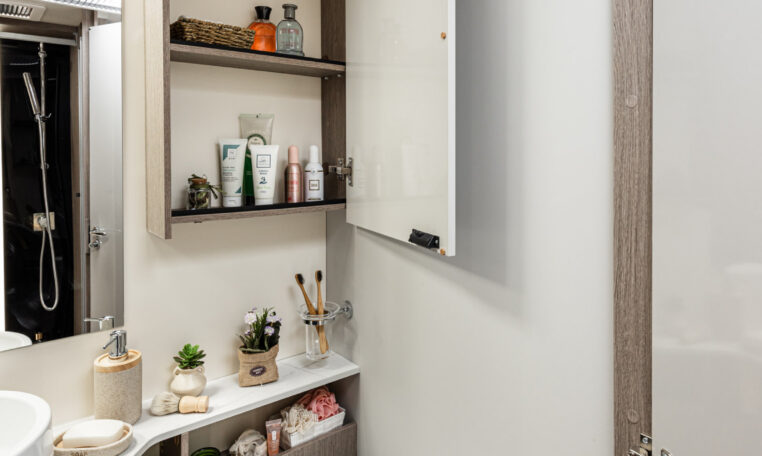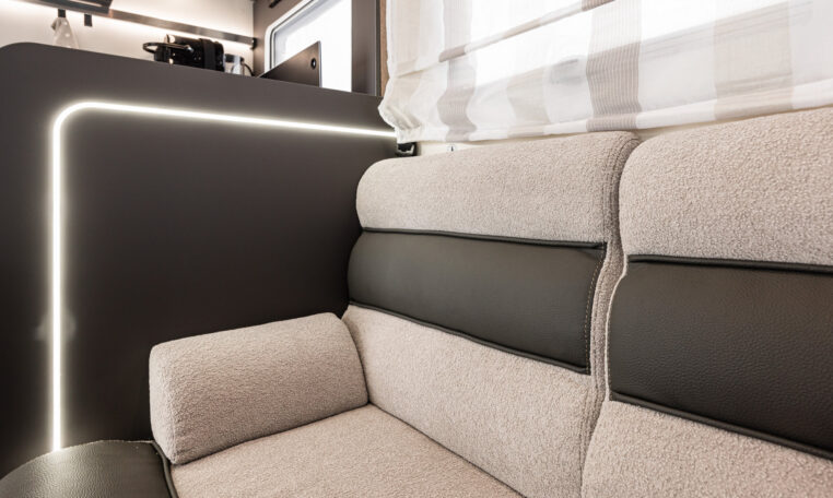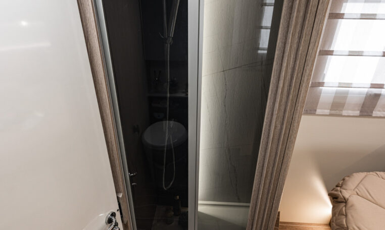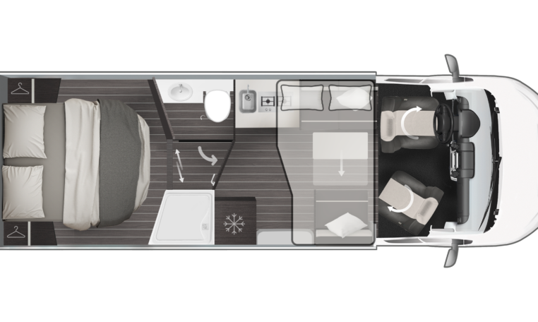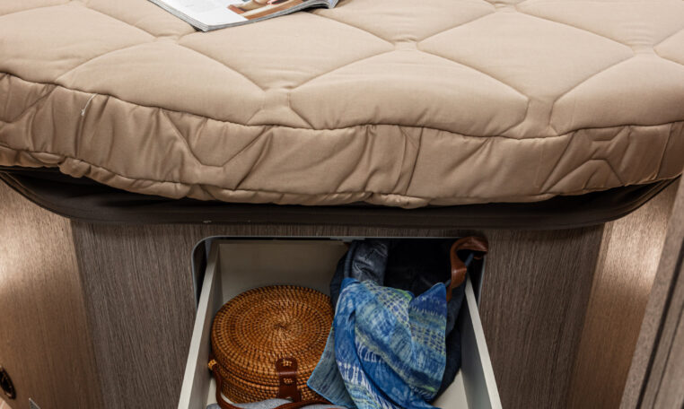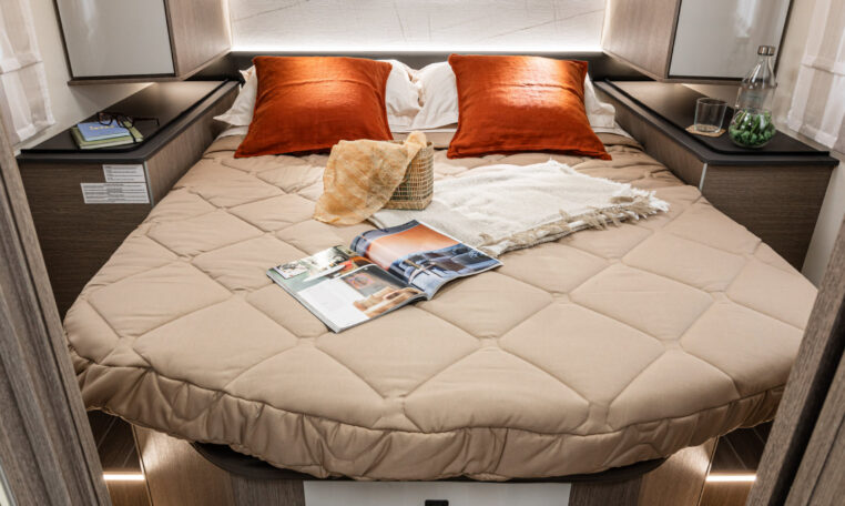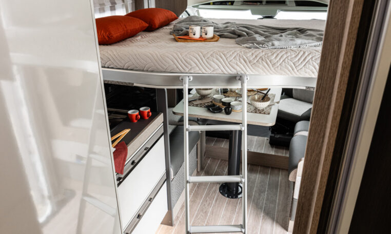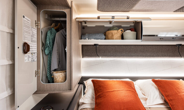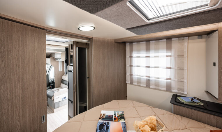 - Twin bedroom at the back of the motorhome (connects to a wide bed)