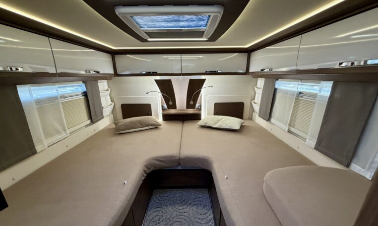 Sänky matkailuauton takana: 2 erillistä vuodetta