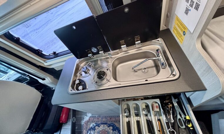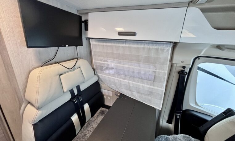 EST: MARKIIS, SMART-TV; POP-UP (lisa 2 magamiskohta) KATUS; Istmekatted LAREN (kunstnahk); Kerevärv "Must metallik" TPMS – automaatne rehvirõhu kontrollsüsteem; Kerevärvi värvitud esistange ja kaitseraud; Must libisemisplaat esistange all; Udutuled; Kahevärvilised 16" valuveljed; Techno disain armatuurlaud (hõbedased ehisdetailid); Nahkkattega rool ja käigukangi nupp; Päikesepaneel; Markiis; 9-tollise ekraaniga multimeediakeskus ja raadio PIONEER (Bluetooth /Apple Car Play / Andoid Auto); Tagurduskaamera; WEBASTO Diisel Airtop 55; CP Plus juhtpaneel; Talvepakett (Isoleeritud ja soojendusega välistorustik; armatuurlaua termokate; Kabiini termokardinad; elutoa ja tagauste lükandkardinad; Akende sisemised termokatted (va K2); Talvine isolatsioon POP-UP katuse magamiskohtadel