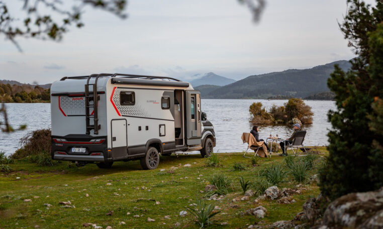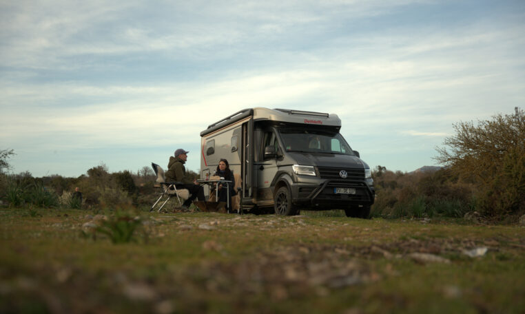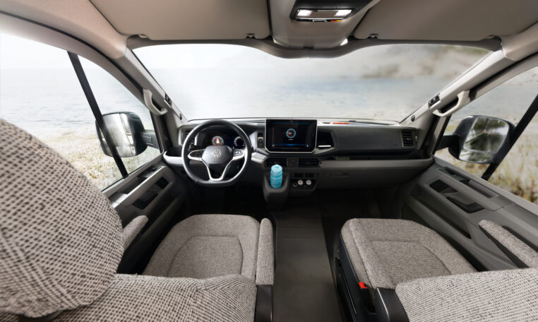First Edition (DAB+, Discover Pro radio navigation system with 12’ touchscreen colour display, Indium Grey Metallic paint finish, trailer coupling preparation, LED headlights with LED daytime running lights, Advanced assistance package including ACC and intelligent speed/lane assist, differential lock, Climatronic, light and vision package, front window tinting, gross vehicle weight 3.88 t, frame windows, body doors with windows, T-hood window, LED light bar, 70x50 roof hood above seating area, black awning including LED light strip, roof hood 3.88 t, flush-fitting windows, habitation door with windows, T-shaped bonnet windows, LED light bar, 70x50 roof hood above seating area, black awning incl. LED light strip, roof vent, high bed, EB to DB, black roof rails incl. ladder, air suspension rear, raised chassis, 18’ rims in matt black, 255/55 low profile tyres, First Edition exterior design, rear spoiler with rear view camera, lithium battery, diesel heating, CP+, 131 l compressor refrigerator, 32’ TV, CamperNet router with roof antenna) "