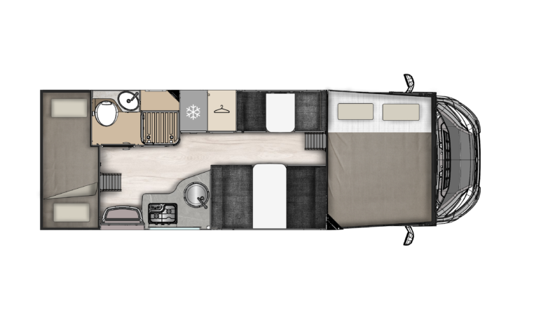 • Manuaalselt allalastav voodi kabiiniosa kohal (2-le)