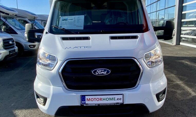 165 hj FORD 2.0 TDI diiselmootor; Automaatkäigukast; 3500 kg täismass (Heavy Duty alusvanker võimaldab ümber registreerida 4100 kg täismassiga sõidukiks); Urban Grey istmekatted; HD Esituled + eesmised udutuled kurvitulede funktsiooniga; 12-tolline raadio puuteekraan koos SYNC 4 meelelahutussüsteemiga (Apple CarPlay + Android Auto); ABS/ESP; 16" terasveljed ilukilpidega; TREND interjöri disain; Kerega samavärvi pamper ja poritiiva laiendid; Raadio juhtnupud roolil; Kahe lukustuspunki-, kesklukustuse- ja aknaga elamuosa uks; Päikesepaneel 200W; Tagurduskaamera koos eraldiseisva monitoriga; Panoraam katuseluuk kabiiniosa kohal; Kabiiniosa pimenduskardinad; TV hoidja; Talve pakett; Reoveepaak isoleeritud ja 12V elektriküttega; Põrandakütte 230V elektriga kaldavoolult; Täiendava soojusisolatsiooniga elamuosa trepiaste; Elamuosa istmetest ja lauast moodustatav magamiskoht 216 X 107(58) mm; ISOFIX kinnitusega tagumised istmed; Elamuosa aku Varta G-14 (95 Ah, AGM); Omnivent ventilaatoriga katuseluuk 400 x 400 mm; TRUMA 6EH elekter/diisel soojendus; Elektriliselt allalastav lisavoodi 190 x 123 mm; CP pluss juhtpaneel; Valamu kate mitmeotstarbeline; Päev/öö eralduskardin; Isofix kinnitused tagaistmetel; Reguleeritava kõrgusega söögilaud; Lukustatav kindalaegas