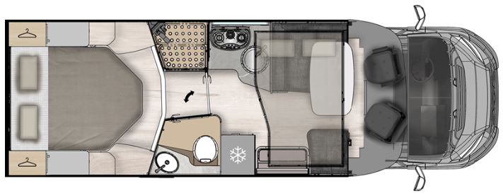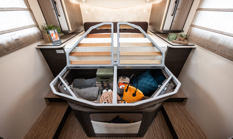 - Matkaauto tagaosas üks suur täislaiuses reguleeritava kõrgusega voodi (FLEXY SPACE GARAGE))