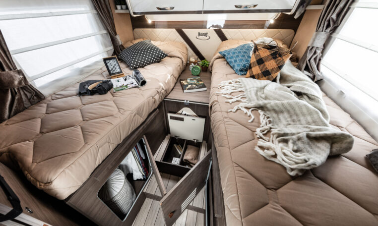 Kahe eraldi voodiga magamistuba matkaauto tagaosas (ühendatav laiaks voodiks)