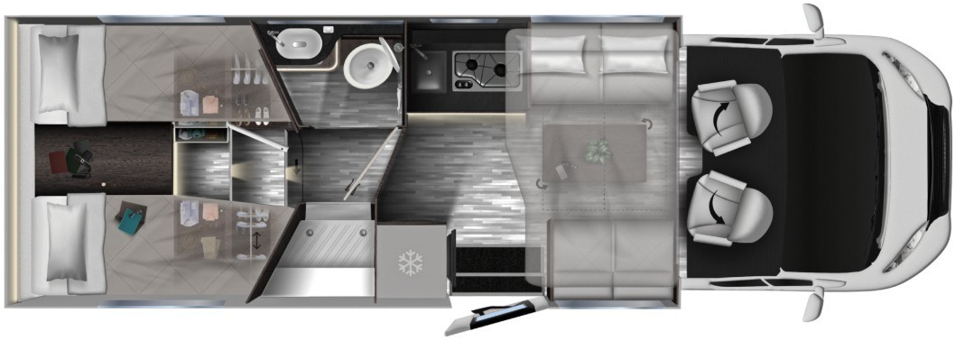 - Kahe eraldi voodiga magamistuba matkaauto tagaosas (ühendatav laiaks voodiks)