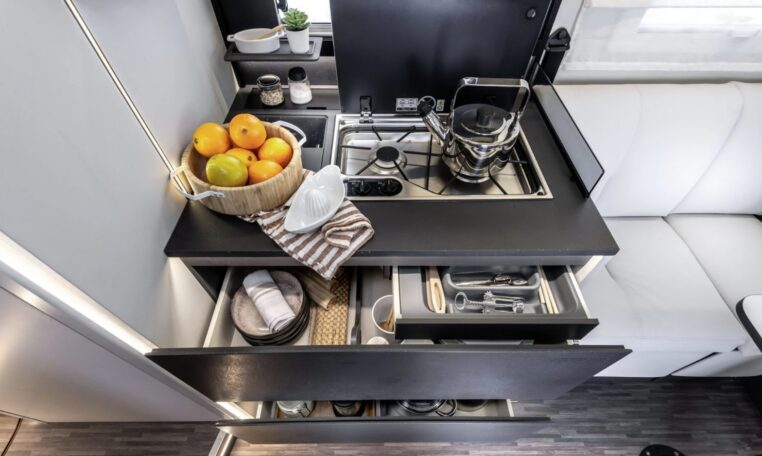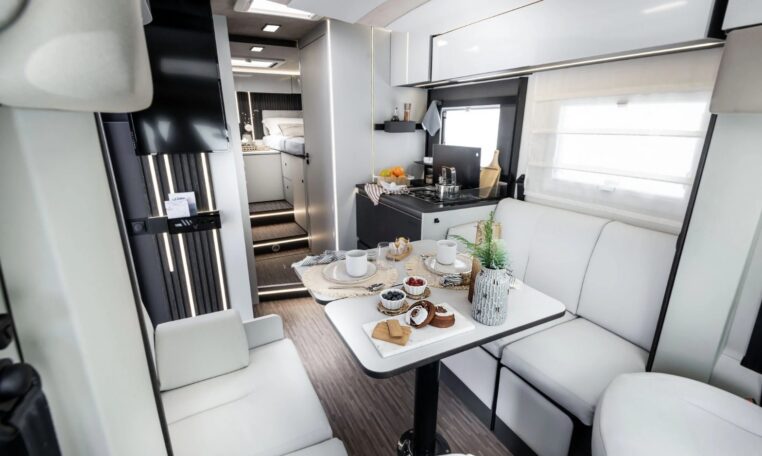 EST: kunstnahk "PRESTIGE STANDARD"; EXTRA TECH PACK - Täisdigitaalne näidikutepaneel; Kabiiniosa automaatne kliimaseade; Juhtmevaba nutitelefonilaadija; Täis-LED esituled, 2 DIN multimeediakeskus (Apple Car Play / Android Auto) + raadio; Topeltläätsega tahavaatekaamera (tagurdus + tahavaatepeegli funktsioon; 200W päikesepaneel + MPPT kontroller (elamuosa aku laadimiseks); Gaasi kiirühendusega väljavõte gaasigrilli, -pliidi või gaasiahju jaoks markiisitelgi kütmiseks; Väline voolupistik 12V ja 220V voolu saamiseks (220V inverteri või kaldavoolu olemasolul); Välidušš (ühenduspesaga garaažis); Truma Combi 6 DE diisel- ja elektrikütteseade (6000W diisel ja 1800W elekter); Automaatvahetajaga ja avariiklapiga gaasireduktor Truma DuoControl CS Vertical; Välised termokatted kabiiniosa akendele; Armatuuri termokate matkaauto sisse armatuuri peale; Elektrilise küttega tuuleklaas; ISOFIX turvaistmete kinnitused tagumistel istmetel; Tagumised parkimisandurid; Elektriline käsipidur; Elektriline põrandaküte kaldavoolult; Täiendava soojusisolatsiooniga sisenemisaste; 174L külmik; paigaldatud tulekustuti;
