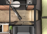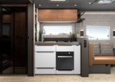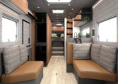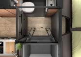 istmed pööratavad L-kujuliseks diivaniks, 5-s istekoht turvavöö ja ISOFIX-iga; Kabiini kohal allalastav voodi 2-le;