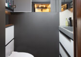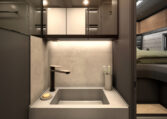 Integreeritud külmik (kompressorkülmik), Praeahi köögiblokis, Induktsioonpliit 2 töötasapinnaga; Mineraalmaterjalist töötasapind köögis ja vannitoas, 230 V kapselkohvimasin;