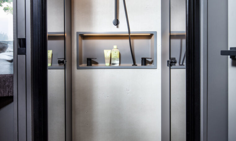 Integreeritud külmik (kompressorkülmik), Praeahi köögiblokis, Induktsioonpliit 2 töötasapinnaga; Mineraalmaterjalist töötasapind köögis ja vannitoas, 230 V kapselkohvimasin;