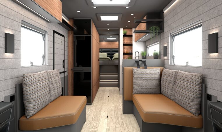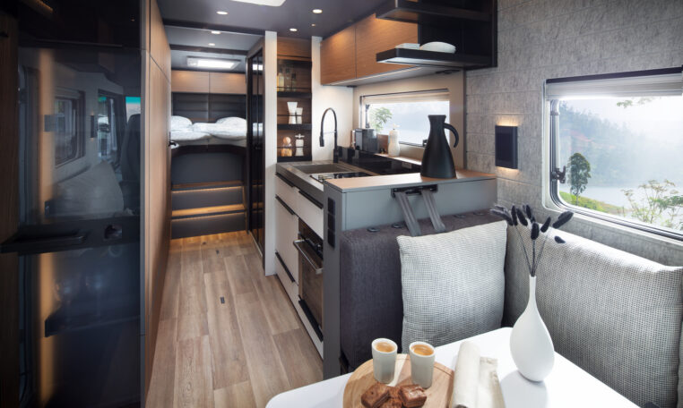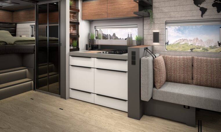 istmed pööratavad L-kujuliseks diivaniks, 5-s istekoht turvavöö ja ISOFIX-iga; Kabiini kohal allalastav voodi 2-le;